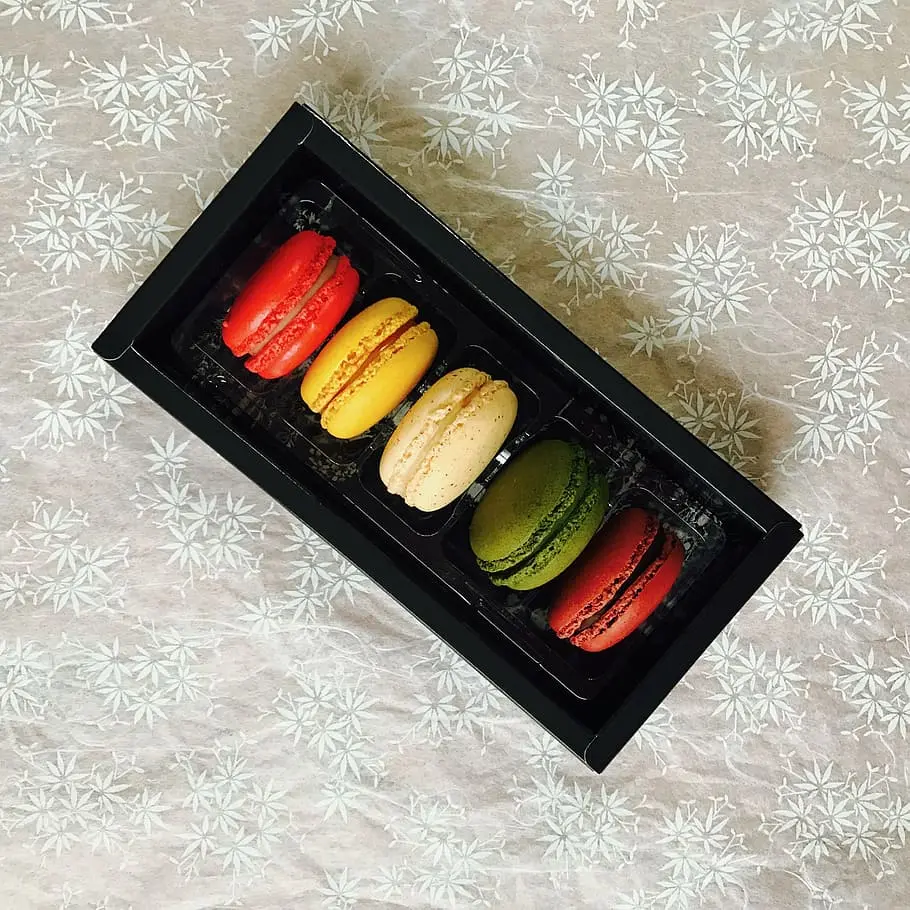 Kemasan jenis macaron box merupakan salah satu box yang berbentuk Panjang dengan sekat kecil untuk Menyusun makanan. Kemasain ini cocok untuk mengemas makanan dengen ukuran kecil serperti dorayaki, biscuit, roti, dan lainnya. Selain itu, kemasan macaron box juga memiliki warna yang full color dan bisa kamu hiasi dengan desain sesuai kebutuhan perusahaan.